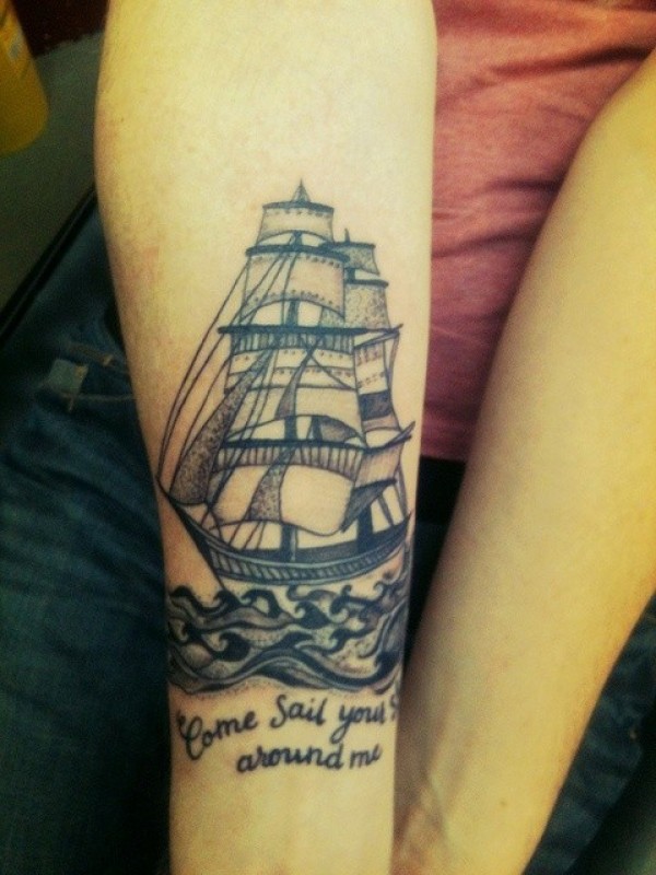 一套好看的手臂大船纹身图案