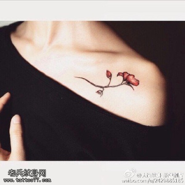 后肩唯美花藤英文图案图片_植物纹身图案大全_纹身图吧