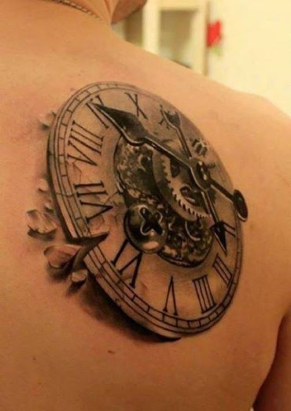 女孩子肩背时钟纹身图案