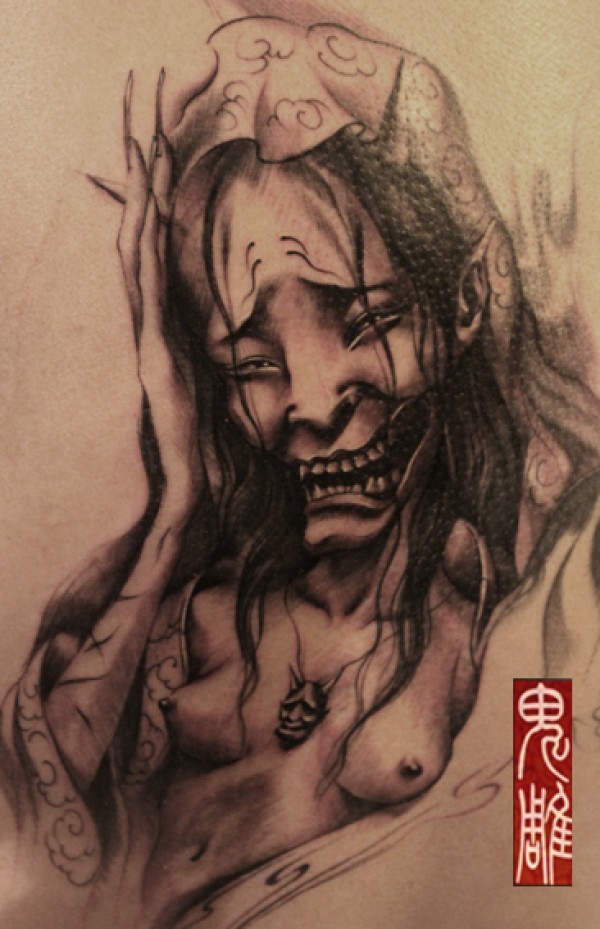 能面万媚纹身手稿_52张日式能剧面具纹身手稿图案素材欣赏