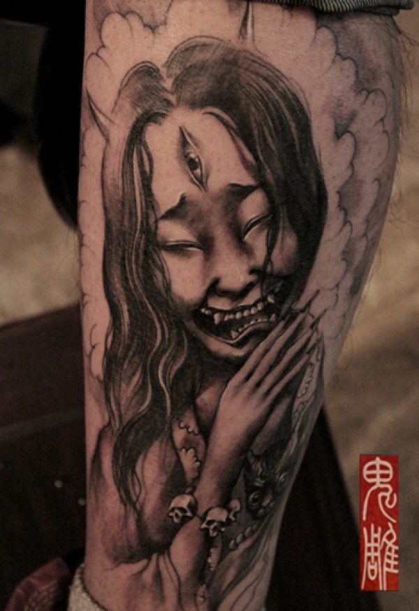 能面万媚纹身手稿_52张日式能剧面具纹身手稿图案素材欣赏