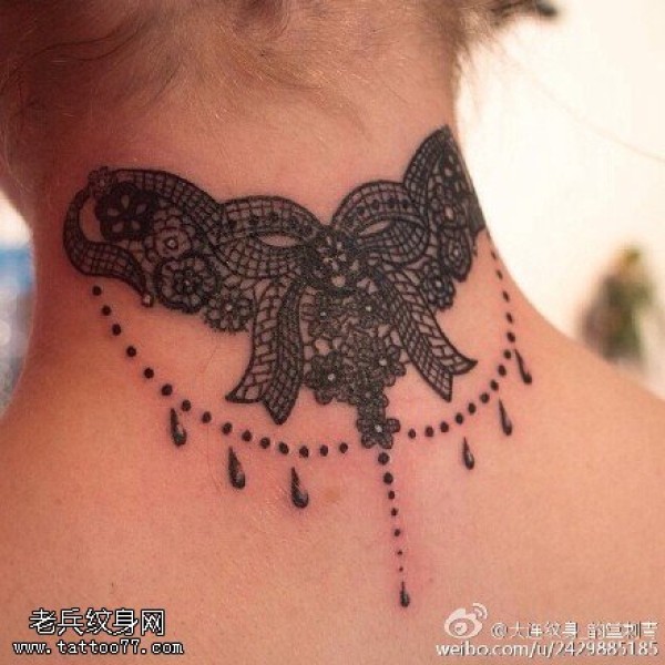 颈部美丽的蕾丝蝴蝶结纹身图案