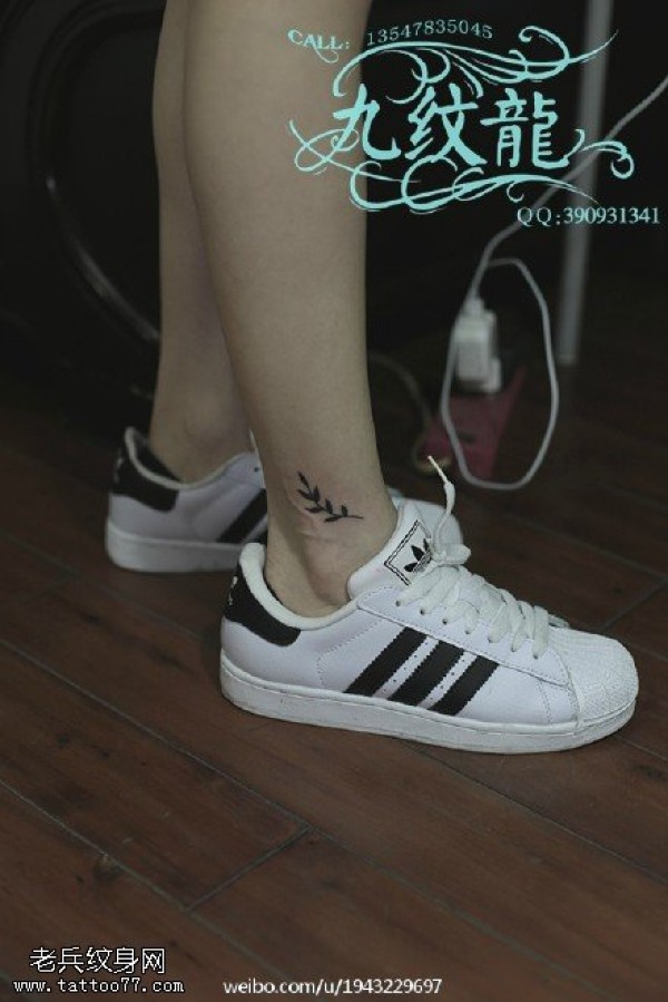 脚腕上精美的橄榄枝纹身图案