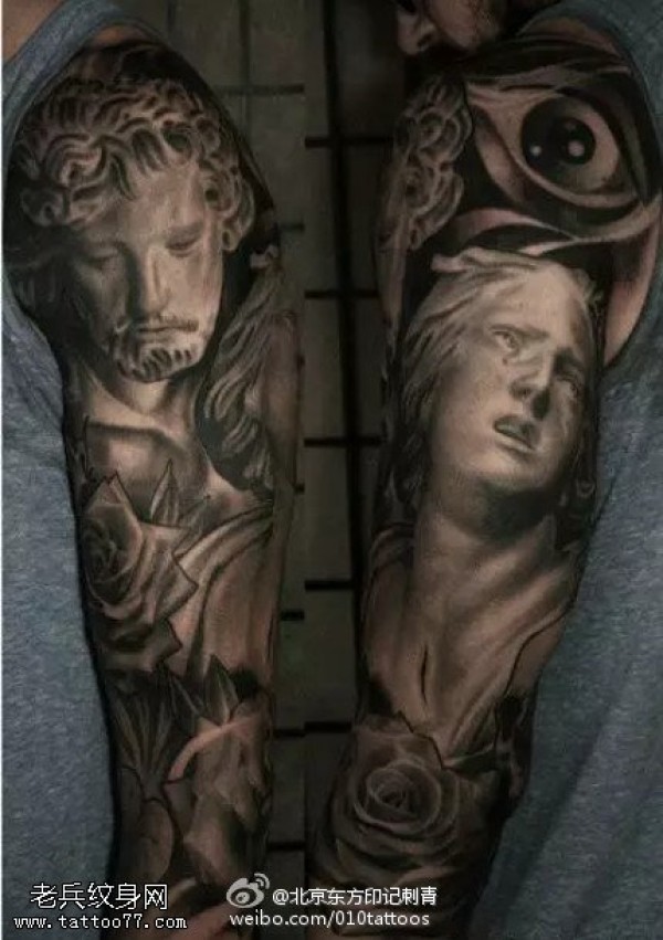 欧美花臂纹身_22张霸气黑灰欧美大黑花臂纹身图案作品图片