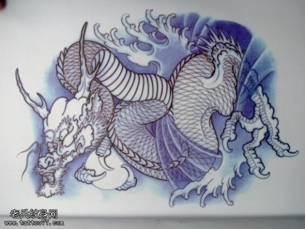 龙纹身手稿_一组老传统黑灰龙手稿纹身图案