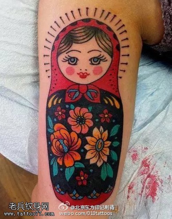 传统经典彩色吉祥娃娃纹身图案