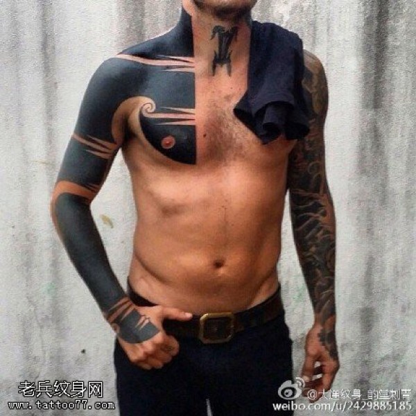 男性超帅气的黑色半甲部落图腾纹身图案