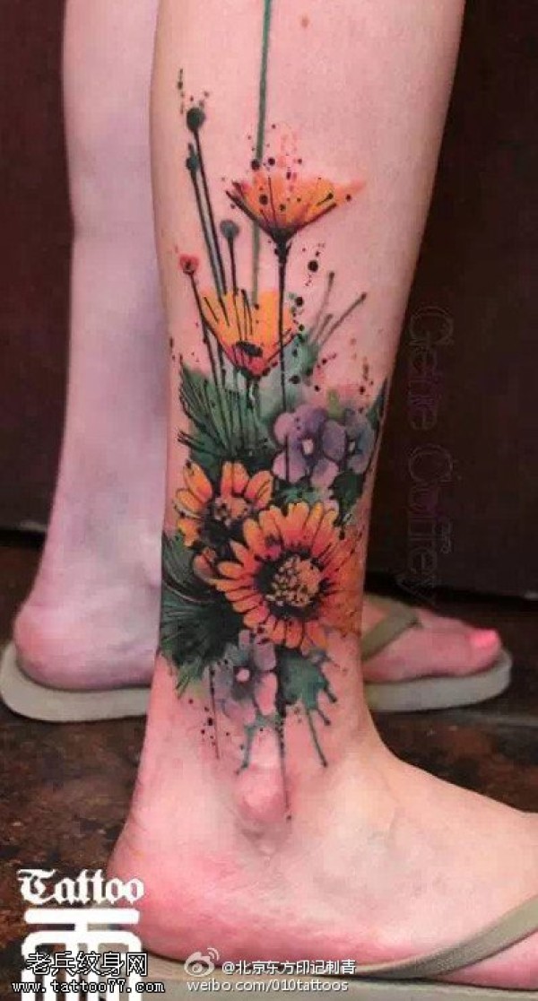 清新花朵腿部纹身图案图片_植物纹身图案大全_纹身图吧