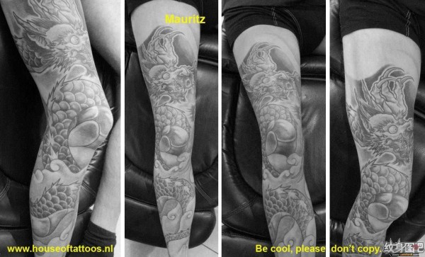花腿纹身--一组大黑腿纹身图案作品欣赏