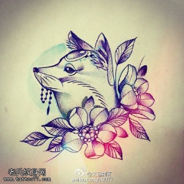 漂亮的狐狸手稿纹身图案