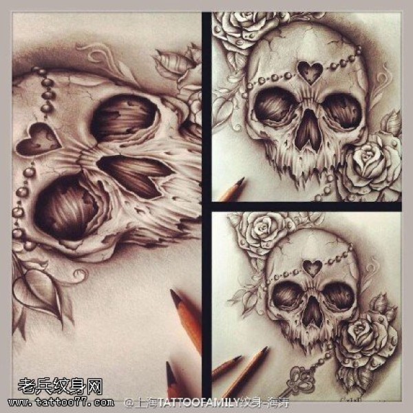 惊悚的骷髅手稿纹身图案