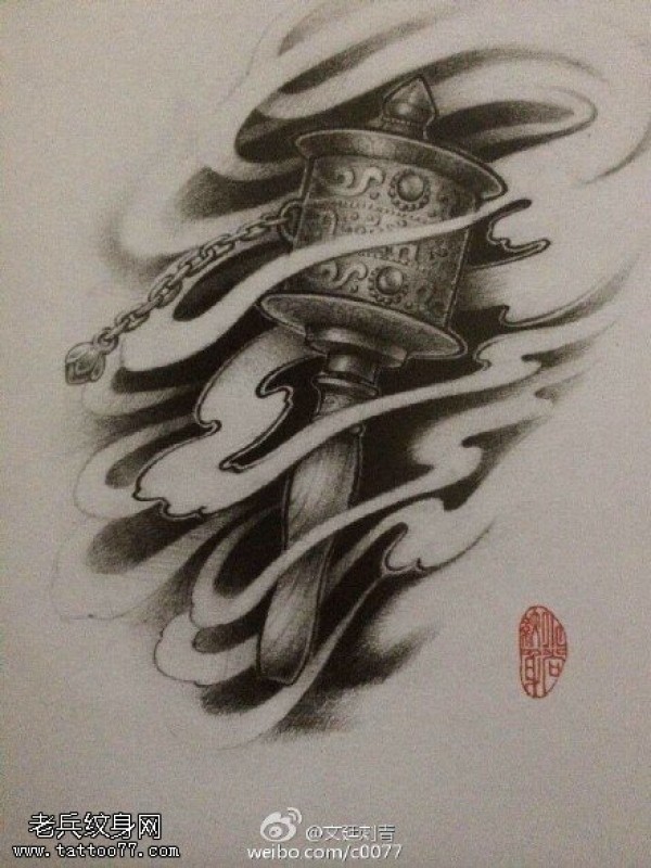 立体感效果的转筒手稿纹身图案