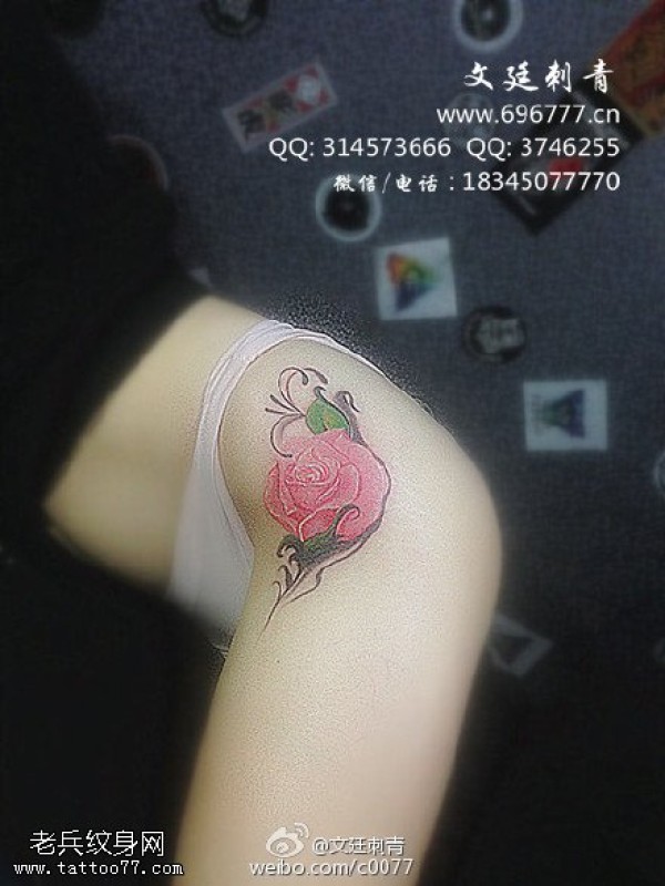 欧美玫瑰纹身 男生手臂上花朵纹身图片