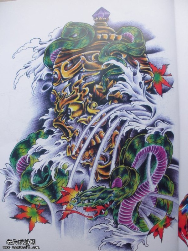 德国恐龙纹身眼镜蛇和卡通鳄鱼纹身水彩动物图案纹身