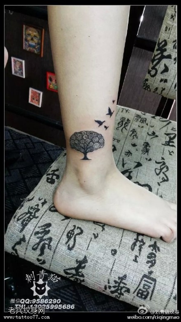 清新小桃花脚踝纹身_脚部纹身图案大全_纹身图吧