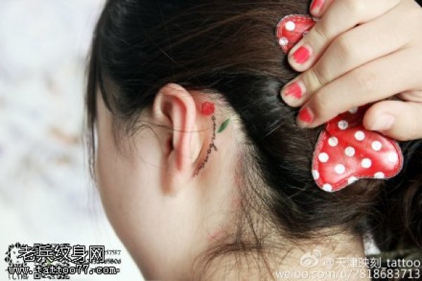 多款女生耳后黑色线条素描文艺小清新小图案纹身图案