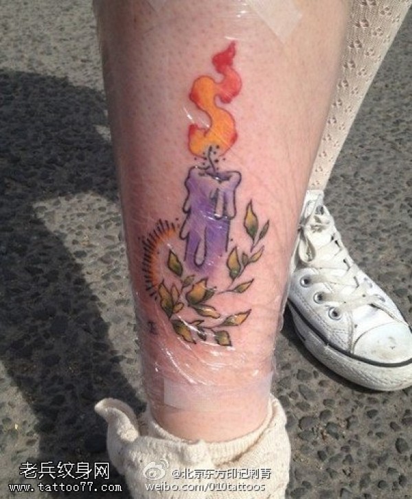 小腿漂亮的蜡烛纹身图案