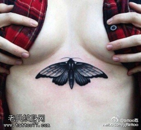 胸部逼真形象的蝴蝶纹身图案