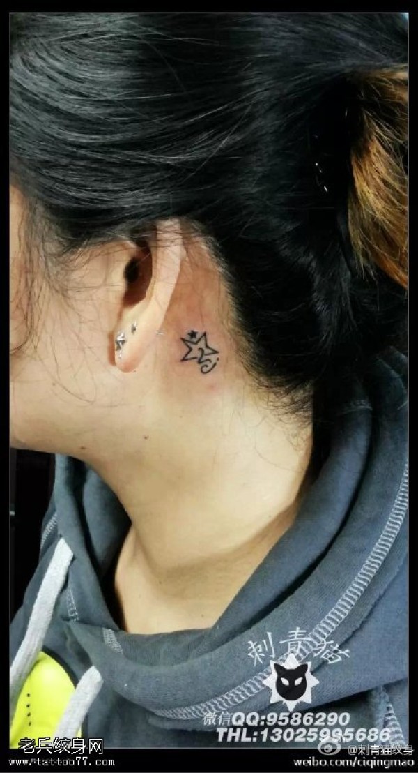 多款女生耳后黑色线条素描文艺小清新小图案纹身图案