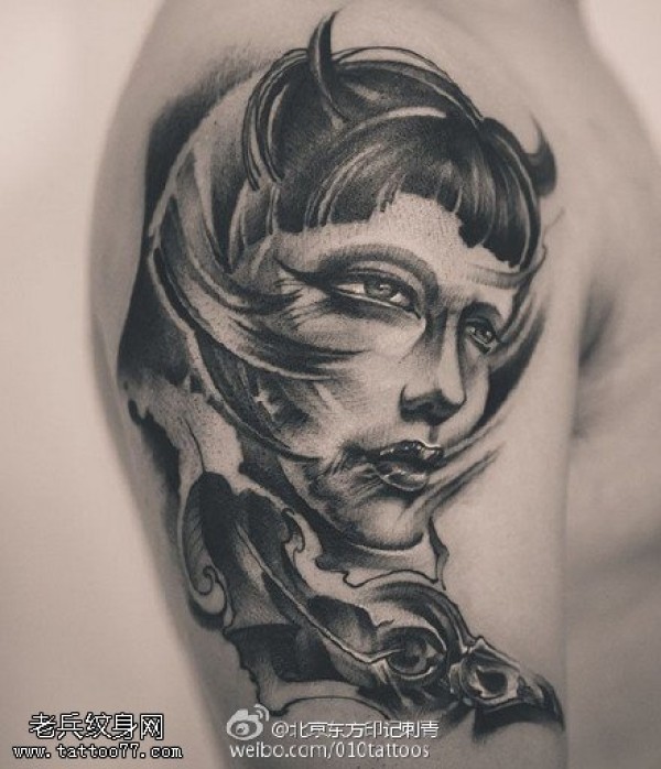 女性肩部肖像刺青_肖像纹身图案大全_纹身图吧