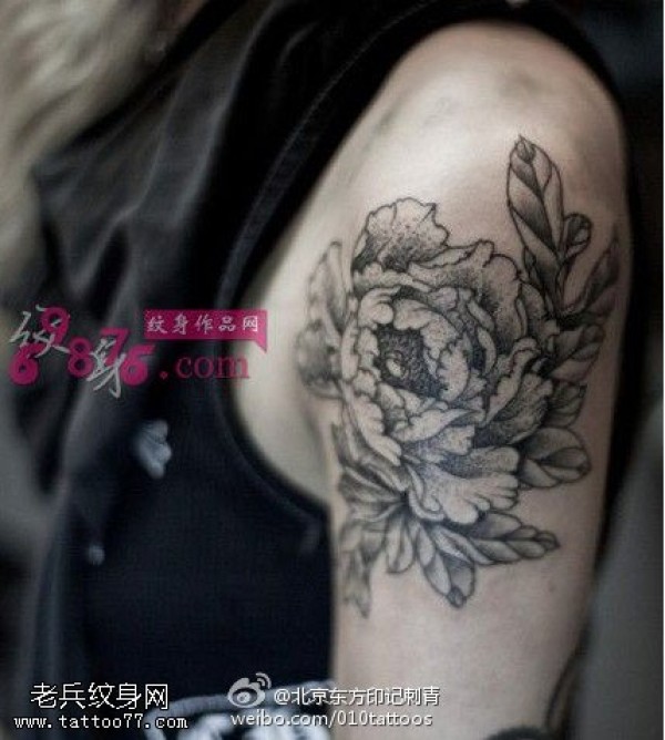 后肩唯美花藤英文图案图片_植物纹身图案大全_纹身图吧