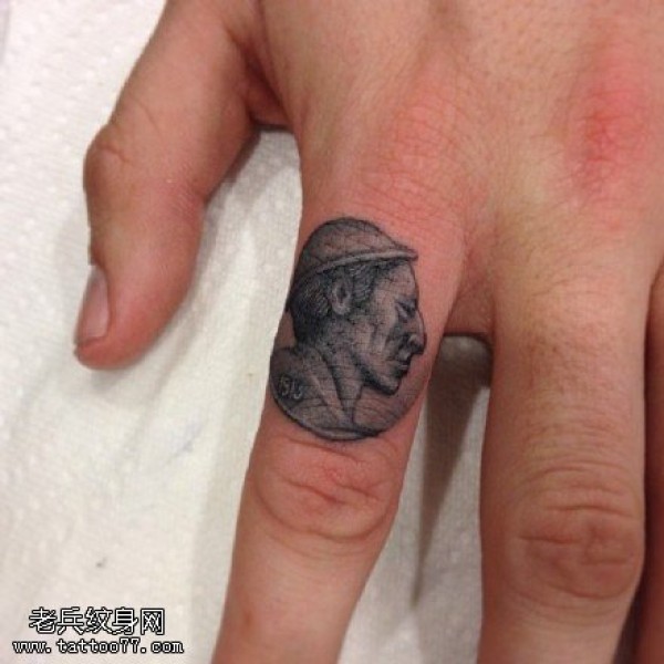 手指上的人物肖像纹身图案