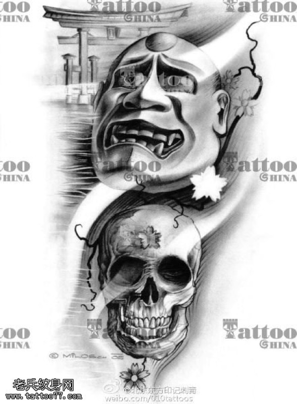 能面万媚纹身手稿_52张日式能剧面具纹身手稿图案素材欣赏