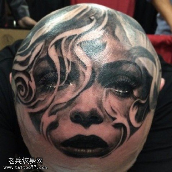霸气男头部时尚纹身图片_头部纹身图案大全_纹身图吧