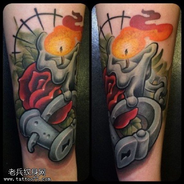彩绘漂亮的燃烧的蜡烛纹身图案