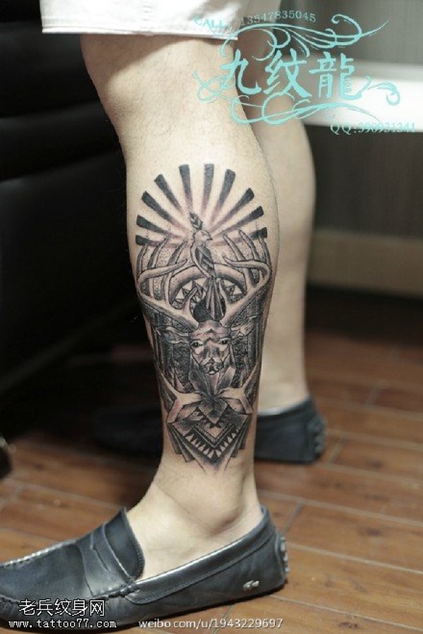 花腿纹身--一组大黑腿纹身图案作品欣赏