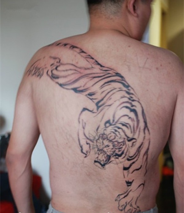 霸气下山虎半甲后背纹身