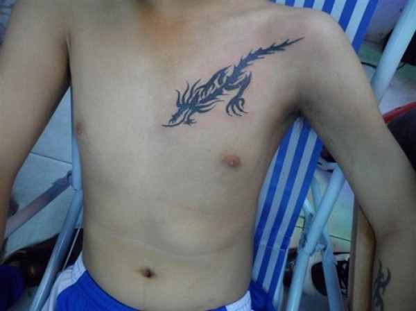 纹身图案胸部男 简洁大方的男生胸部纹身图案