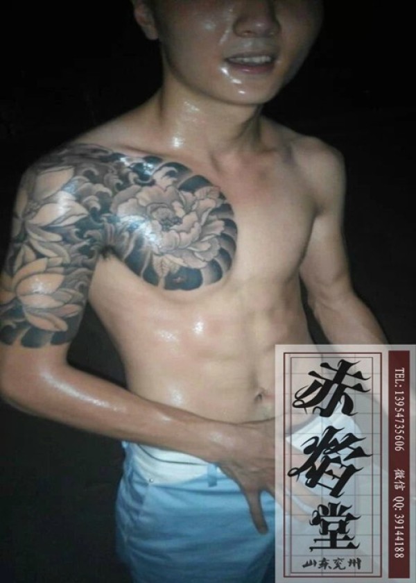牡丹莲花半甲纹身