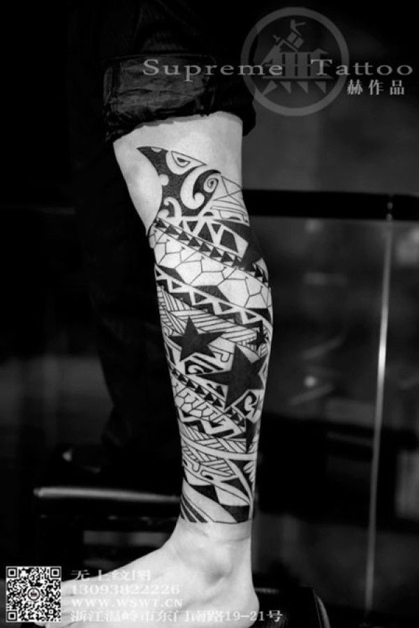 花腿纹身--一组大黑腿纹身图案作品欣赏