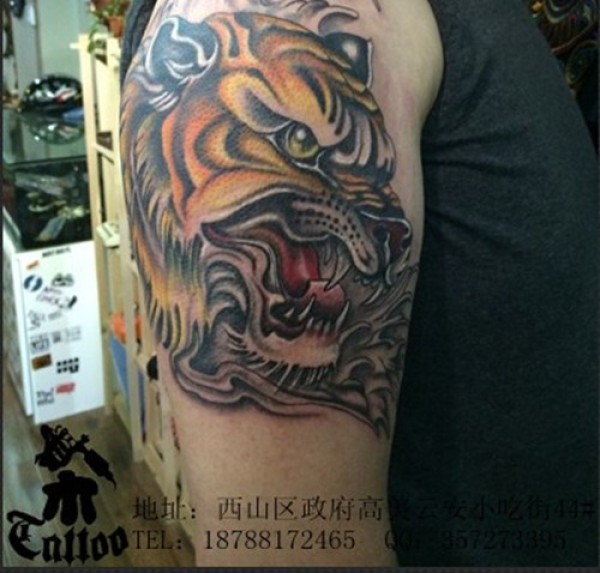 霸气半胛老虎纹身_动物纹身图案大全_纹身图吧