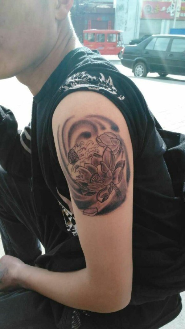 男士个性荷花纹身
