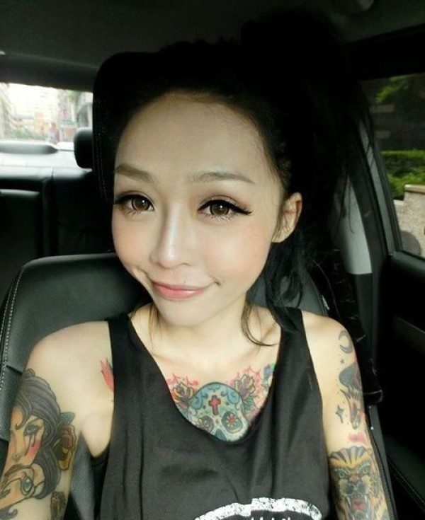 漂亮美眉的个性花臂纹身