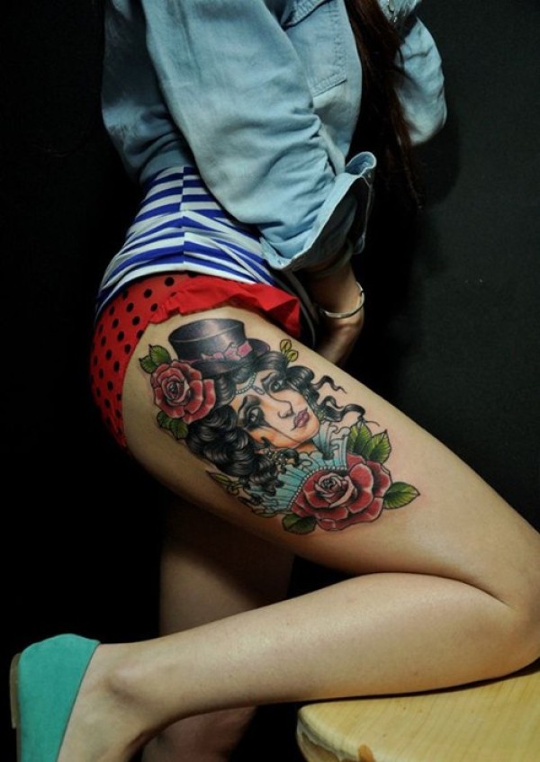 传统花腿纹身--18张传统风格的大花腿纹身图案作品
