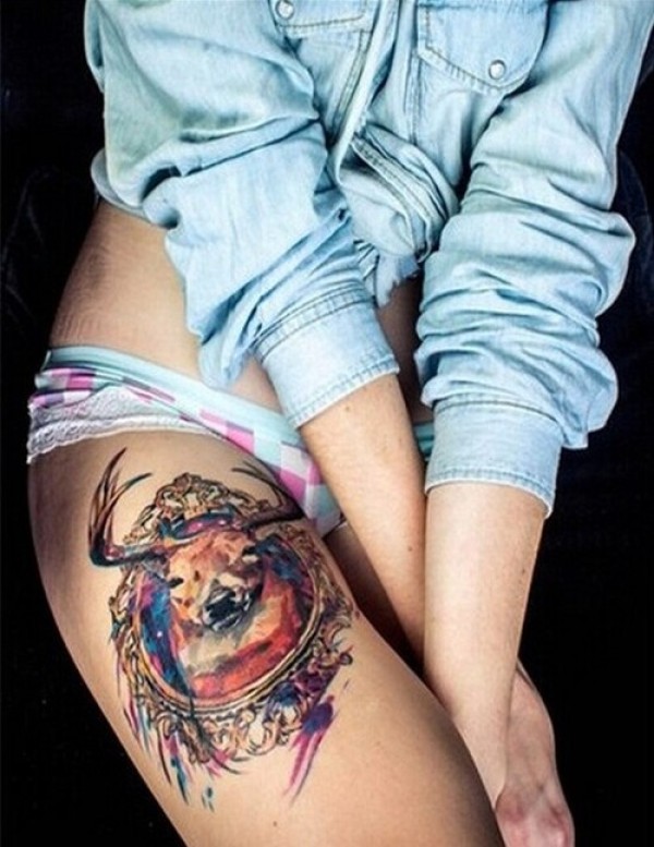 传统花腿纹身--18张传统风格的大花腿纹身图案作品