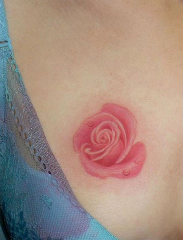 巨乳美女胸口上的性感玫瑰纹身图案