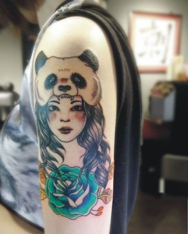 女生肩花纹身_15张女性双肩对称的肩花纹身图案作品图片