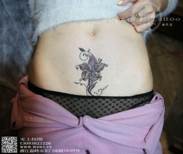 女性腰部莲花花纹刺青_腰部纹身图案大全_纹身图吧