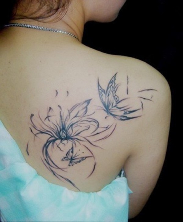后肩唯美花藤英文图案图片_植物纹身图案大全_纹身图吧