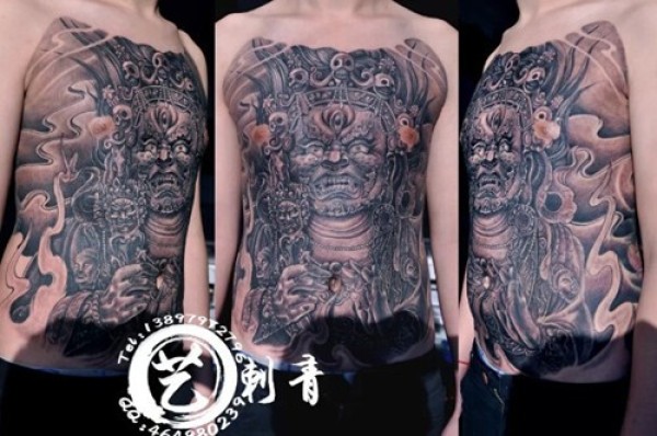 胸前个性大黑天纹身