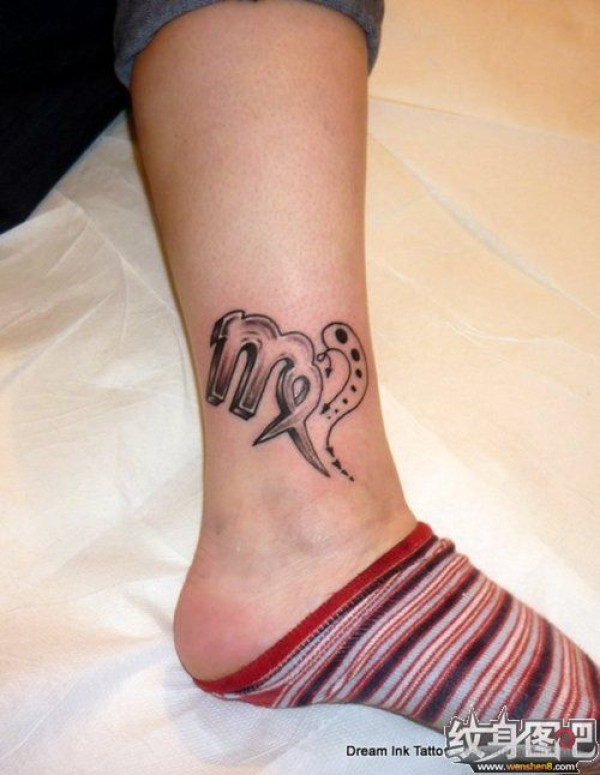 脚腕上字母图腾小纹身