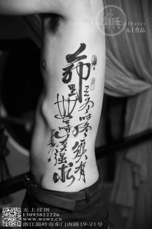 水墨画侧腰纹身