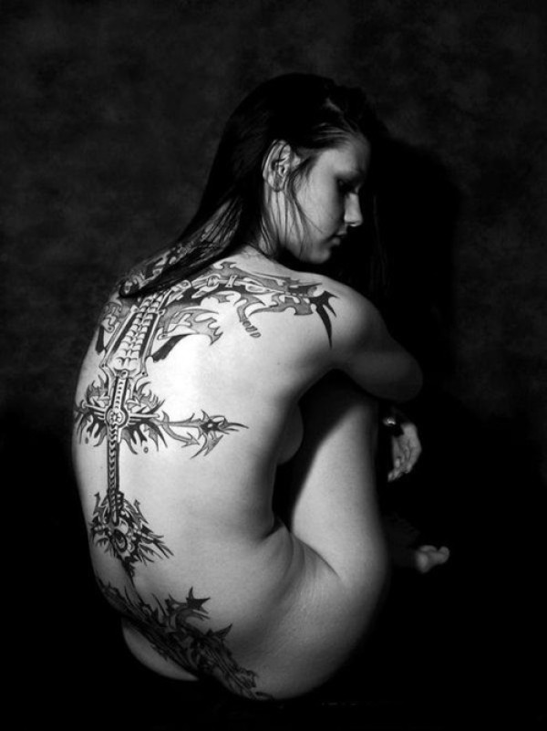 性感女生满背创意文身作品