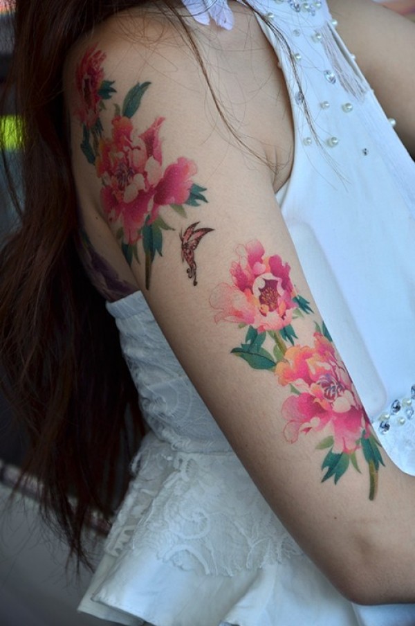 女性肩膀上多款漂亮的花朵纹身图案
