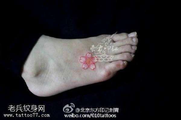 清新小桃花脚踝纹身_脚部纹身图案大全_纹身图吧