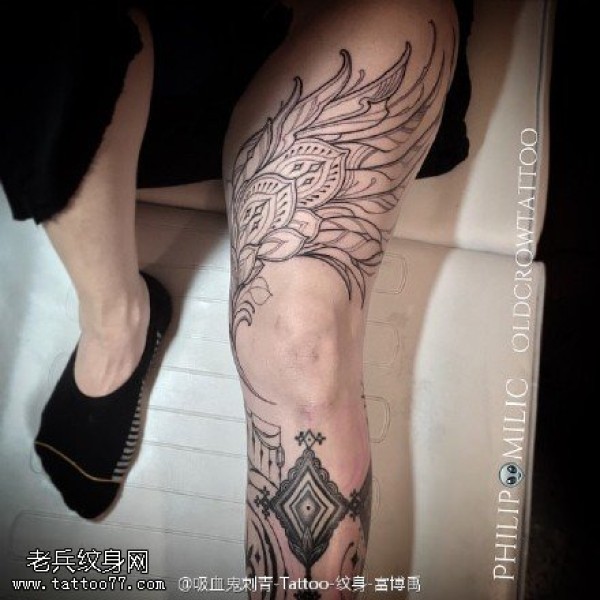 花腿纹身--一组大黑腿纹身图案作品欣赏